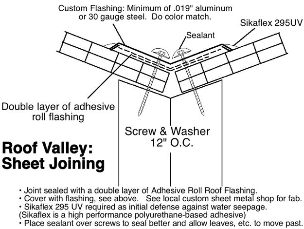 3″ or 6″ x 100 ft. Adhesive Roll Flashing (below) Butyl Adhesive (facing down), Aluminum backing ( faces the sun). Polycarbonate is fastened to structure with screws & washers we sell. Tech & install data sheet